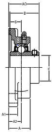 Medidas: d Interior: 3/4 inch. L Longitud total del soporte: 86 mm. J Distancia entre los tornillos de fijación: 64 mm. A1 Ancho de la pestaña: 11 mm. A Ancho del soporte: 25.5 mm. AO Ancho total con el rodamiento: 33.3 mm. S Distancia desde el rebaje de centrado al centro del camino de rodadura: 12.7 mm. B Ancho del aro interior: 31 mm. A2 Distancia de la cara lateral del dispositivo de fijación al centro del camino de rodadura: 15 mm. N Ancho del orificio del perno de fijación: 12 mm. G Tamaño de los tornillos prisioneros: M10. Peso: 0.6 kg. Carga dinámica: 2,878 lb. Carga estática: 1,495 lb. Soporte: F204. Rodamiento: UC204-12. Marca: TIMKEN