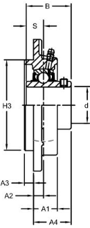 Medidas: d Interior: 20 mm. L Ancho total del soporte: 100 mm. J Distancia entre los tornillos de fijación: 78 mm. J1 Ancho del agujero del perno de fijación: 55.1 mm. A1 Ancho de la pestaña al borde del soporte: 20.5 mm. A2 Ancho de la pestaña: 10 mm. A3 Altura del centro del asiento esférico: 5 mm. A4 Ancho desde la pestaña al anillo interior del rodamiento: 28.3 mm. H3 Diámetro de la base del soporte: 62 mm. S Distancia desde la base del soporte al centro del camino de rodadura: 12.7 mm. B Ancho del aro interior: 31 mm. N Ancho del orificio del perno de fijación: 12 mm. G Tamaño de los tornillos prisioneros: M10. Peso: 0.7 kg. Carga dinámica: 2,878 lbf. Carga estática: 1,495 lbf. Soporte: FC204. Rodamiento: UC204. Marca: TIMKEN