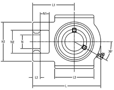 Chumacera de tipo tensora con rodamiento de bolas con anillo interior extendido.